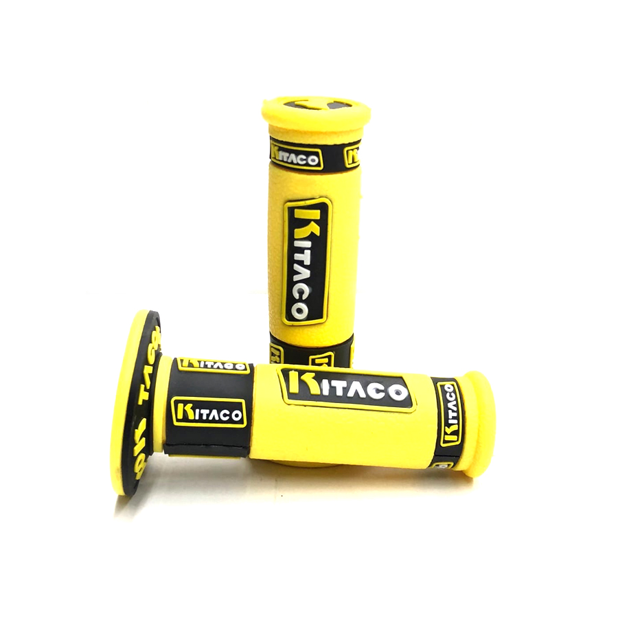 Грипсы для мотоцикла, питбайка - KITACO ZX-B635 в желтом цвете. Достаточно мягкие, удобные и долговечные ручки руля. Покупая грипсы, не забывайте про донаты – это мягкие кольца, которые надеваются на грипсы во избежание мозолей и натертостей в районе большого и указательного пальцев.