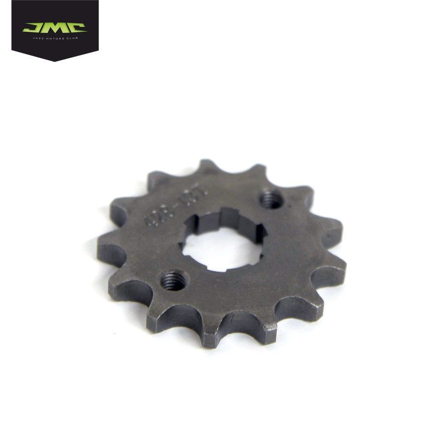 Звезда ведущая под 420 цепь. Подходит на валы двигателей питбайков и мотоциклов c диаметром вала ведущей звезды 20,00 мм. Количество отверстий под крепление - 2, с растоянием между центрами крепежных отверстий - 34,00 мм. Число зубьев звезды - 13. Внешний диаметр звезды 55,00 мм. Толщина звезды - 6,00 мм. Материал - сталь.